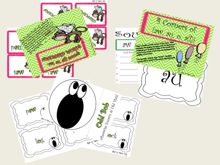 Well, the big kids have completed their testing and all of the Littles have survived 2 days of begin locked up in the classroom. It was a busy and chatty day today. The kids seem as though they have so much more to talk about on days that they are supposed to be SUPER QUIET. We spent some of our time reviewing the {aw, au, al, o} sounds. We played AWKWARD, looked for words with the \aw\ sound in books and magazines, and made a Yawning Dawn/Yawning Paul. You can get it {here} if it's something you could use to help reinforce this sound.